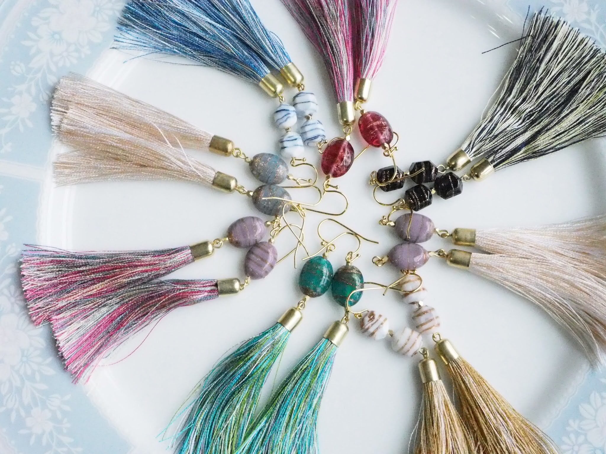 インドの小さな村で手作りしているパーツ(ビジュー・フリンジ)を使用した夏にぴったりのフリンジアクセサリーです!